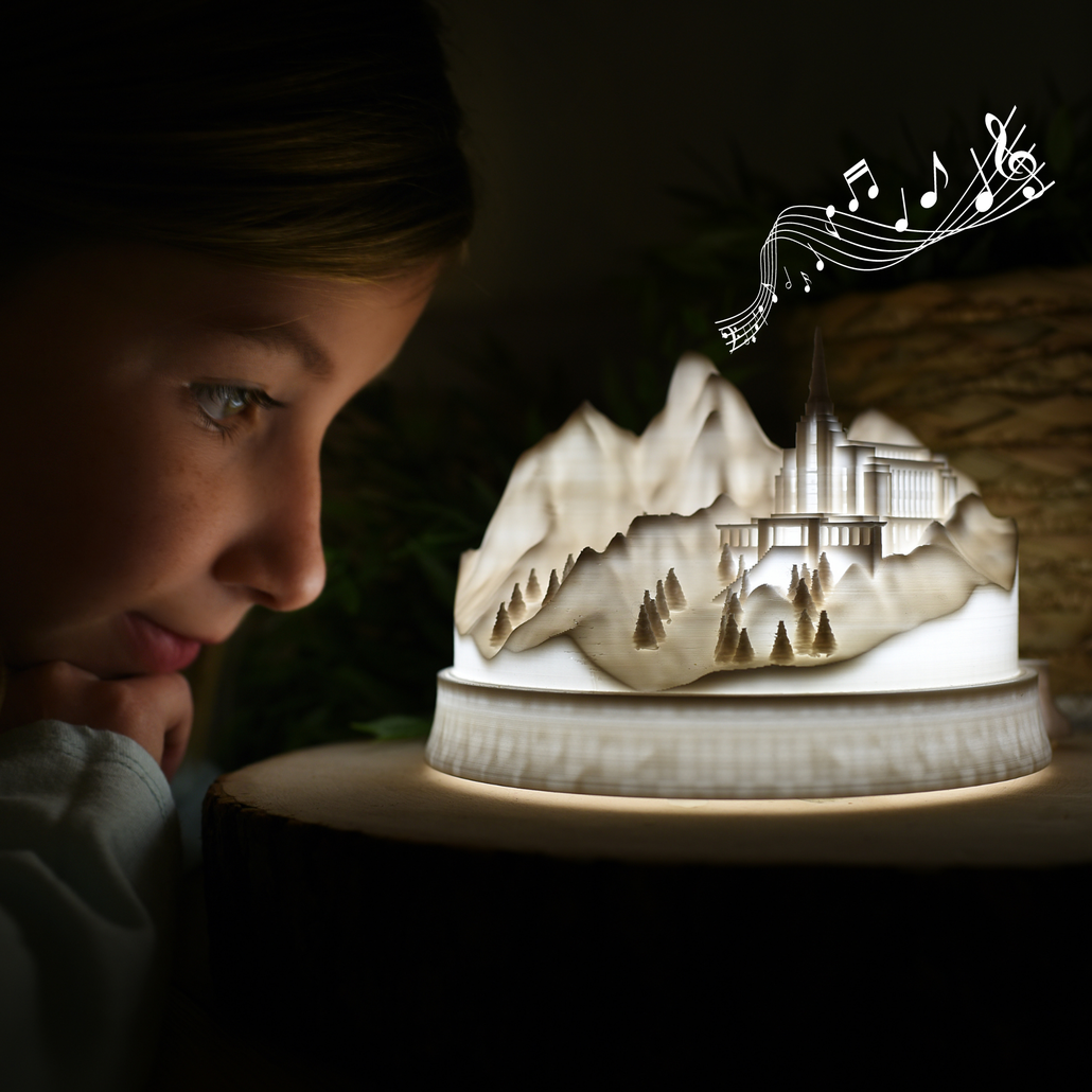 The Temple Music Light is sure to catch every eye and ear in your home. With the press of a button watch as eager children and even adults draw near to take a closer look. They'll listen closely as the enchanting hymn or primary song reminds them that families are eternal. Purchase for yourself and give as a gift to every family member this Christmas and watch as the temple and the principle of eternal families is more deeply engraved upon their hearts.